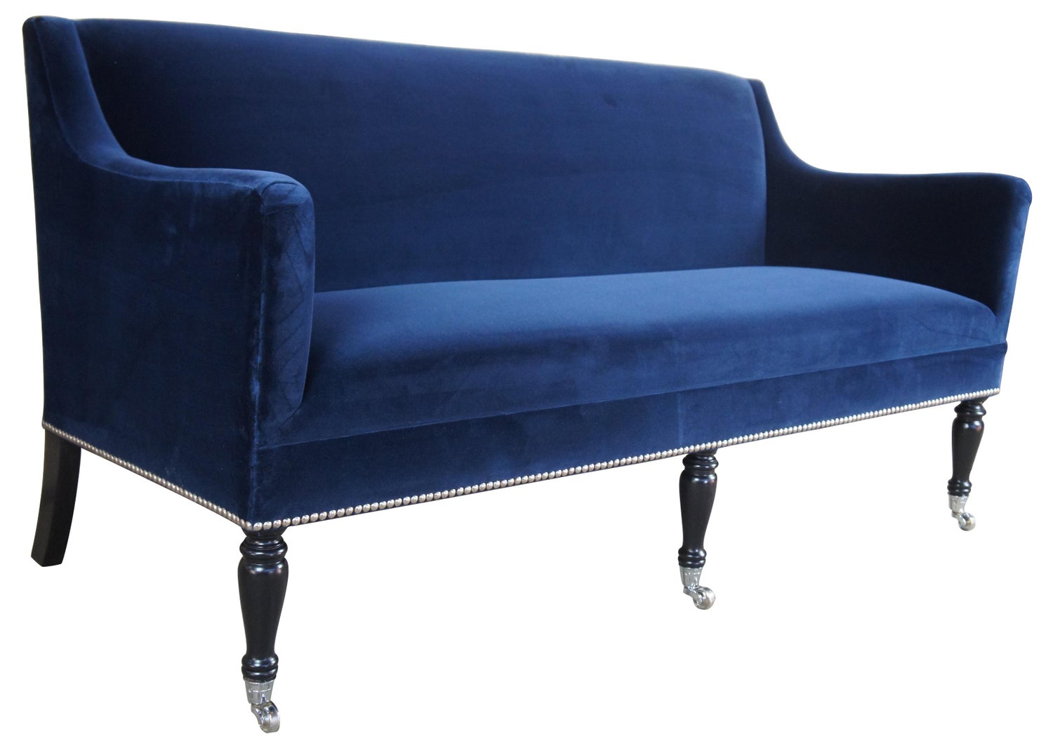 Barclay Butera Interiors Ridgecrest Loveseat Blue Velvet Settee Nailhead Trim At 1stdibs
