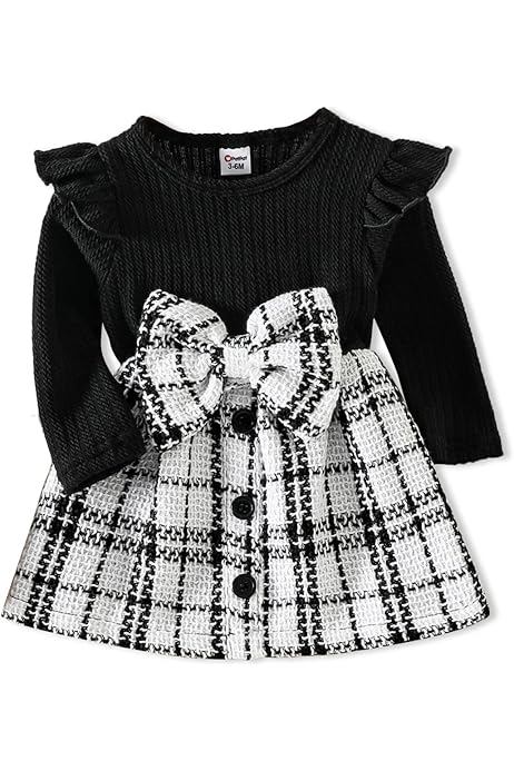 Infant Baby Girl Dress Plaids Long Sleeve Double Breasted A Line Dresses With Headwear 0 3y Black 3 6 Months